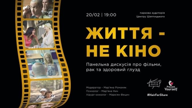 Подія про те, що онкологію зображають у кіно не так, як це є в реальності. Через це у багатьох людей виникає страх перед словом «онкологія». Життя з онкозахворюванням у кіно та в реальному житті суттєво відрізняється, тому на події проаналізують фрагменти з фільмів і говоритимуть про рак та здоровий глузд.