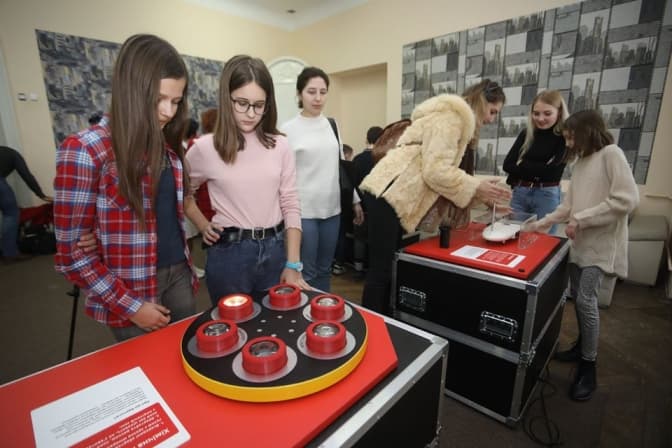 Перша школа, де демонструють нову мобільну лабораторію – ліцей «Просвіта». Лабораторія поєднує фізику, образотворче мистецтво і музику. Тут можна створювати електронну музику, дізнатись, що таке хвиля і звідки береться звук.