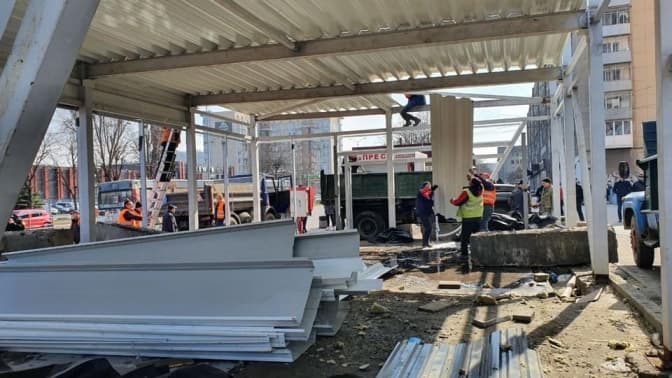 У Львові на проспекті Чорновола, 57 сьогодні, 10 березня, демонтують МАФ, який власник хотів незаконно розширити удвічі.