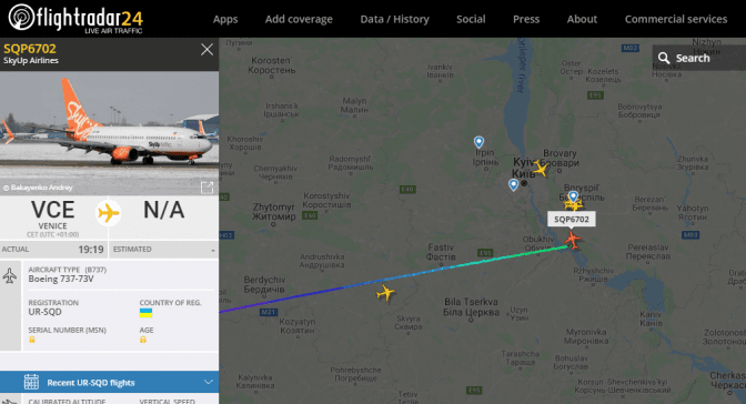 Рейс виконує літак авіакомпанії SkyUp, реєстраційний номер UR-SQD, Boeing 737-700, розрахований на 149 пасажирів за маршрутом Київ (Бориспіль) – Венеція – Київ. О 22.20 він приземлився у аеропорту Бориспіль, повернувши в Україну 123 наших співвітчизників.