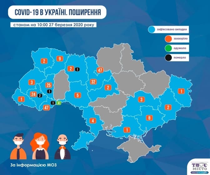В Україні зафіксували вже 218 випадків захворювання на коронавірус. Tvoemisto.tv публікує та щодня оновлюватиме мапу, де підтвердили зараження новим вірусом COVID-19.