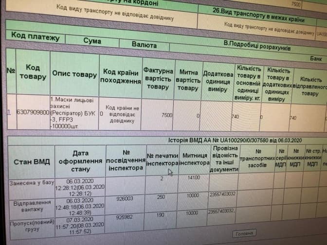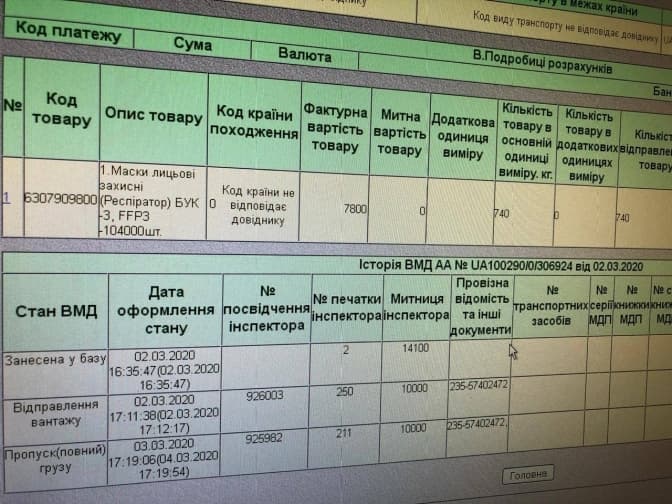 Натомість, за словами голови Держмитслужби Максима Нефьодова, Маски ввезли туди ще до заборони урядом експорту медичних товарів та лікарських засобів.