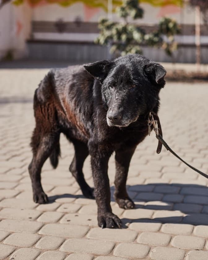 ДОННІ, 11 років. Цей виснажений собака блукав по вул. В. Великого. Видно, що раніше був домашнім красенем. Зараз він в дуже занедбаному стані та з сумними оченятами.