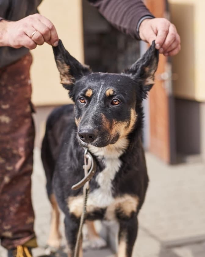 ГЕРМЕС, 3 роки. Потрапив до нас з вул. Медова Печера. Трохи наляканий, але дуже приємний хлопець. Гавкучий, тому припускаємо, що міг бути охоронцем якогось об'єкту в тому районі.