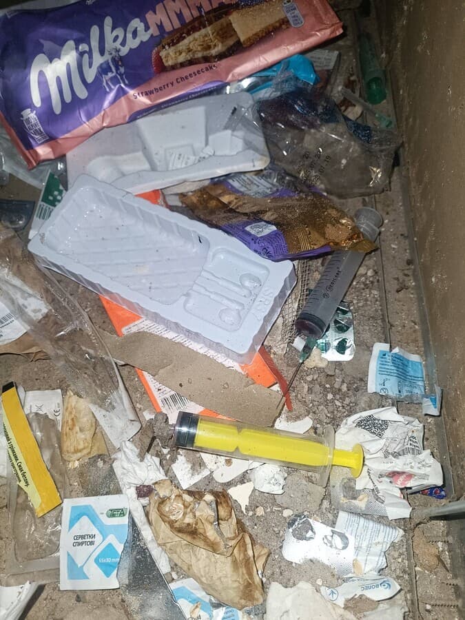 «Подивіться, який жах на фото. Вони там палять, вживають наркотики, ходять в туалет по кутках, розкидають сміття, стягують мотлох. А віднедавна укриття ще й затоплене. ЖЕК ігнорує, чекає на щурів та плісняву, як я розумію», — скаржиться мешканка.