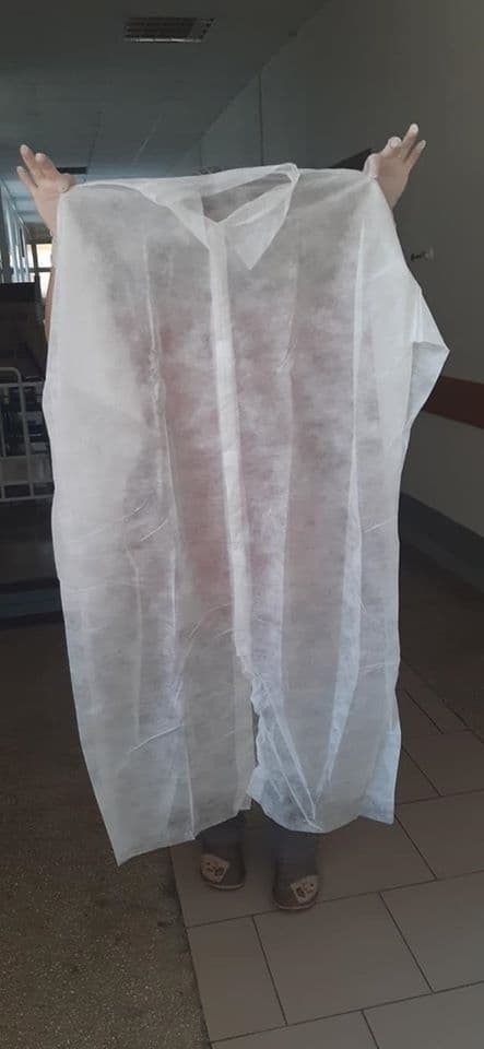 Депутатка Львівської облради Мирослава Бабінська оприлюднила у Фейсбук світлину, як виглядають халати, закуплені для обласної інфекційної лікарні. Під дописом розгорілося обговорення про те, наскільки вони є якісними та гарантують захист. Одна із користувачок написала, що у Мілані використовують такі ж халати, а на них одягаються ще спецфартухи.