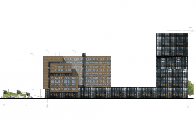 Висота будівель не має перевищувати 59,4 м, а відсоток забудови – 65%. Також тут розташують багатофунційний комплекс із дитсадком, гуртками та спортивними закладами висотою 20,5 м.