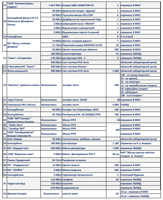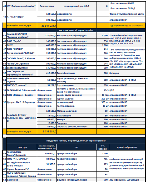 Від початку карантину підприємці-благодійники пожертвували 33,7 млн грн на протидію коронавірусу. Ці кошти пішли на медобладнання та засоби індивідуального захисту для медперсоналу.