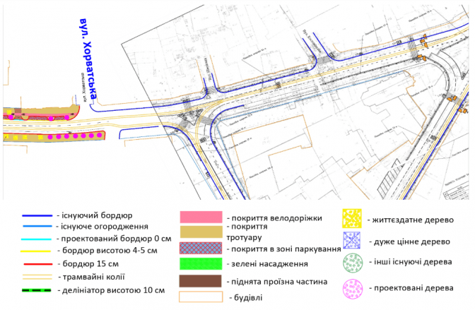 Згідно з технічним завданням, на вулиці зріжуть дерева, замінять комунікації, відремонтують проїжджу частину та тротуари, прокладуть велодоріжку та відремонтують трамвайні колії.