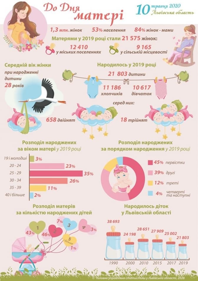 До Дня матері регіональне управління статистики у Львівській області оприлюднило дані по народжуваності на Львівщині.
