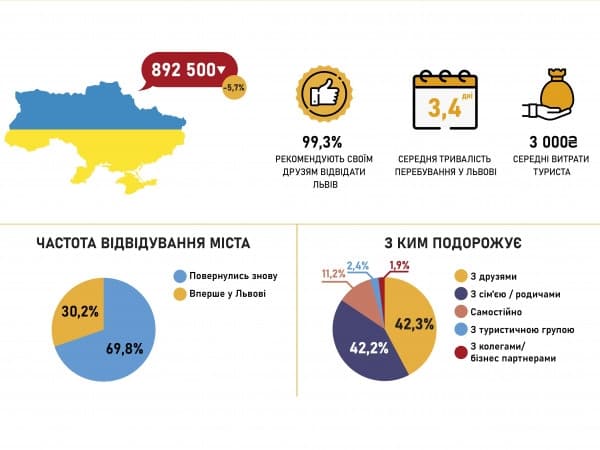 Як йдеться у дослідженні, щомісяця Львів відвідує приблизно 130-140 тис українців. Найбільш відвідувані місця – це площа Ринок, проспект Свободи, Високий замок та Стрийський парк.