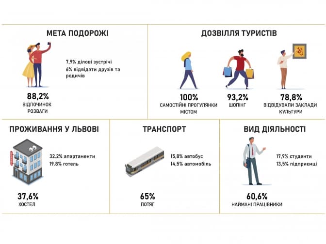 Якщо говорити про портрет туриста, то це найманий працівник, який заробляє 6–20 тис. грн., подорожує в компанії друзів чи родичів. До Львова приїхав потягом, а зупинився переночувати у хостелі чи апартаментах.