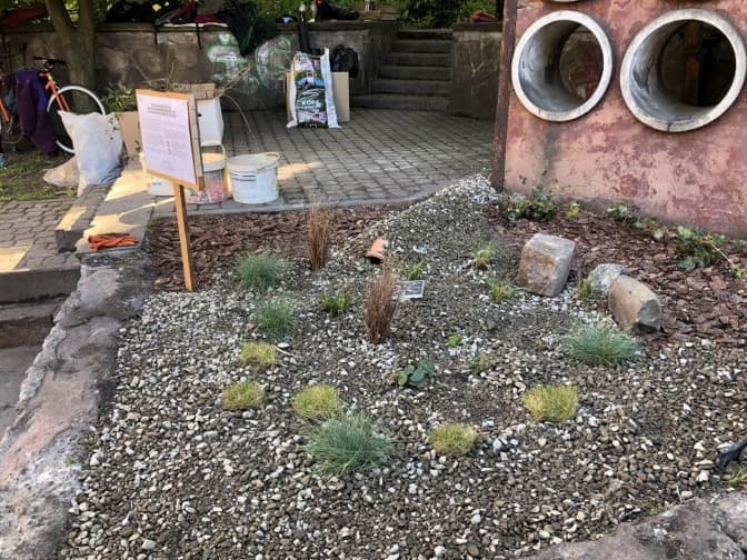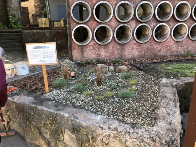 На перехресті вулиць Бандери та Чупринки у Львові озеленили модерністичну стіну та облаштували перший у місті дощовий садок.
