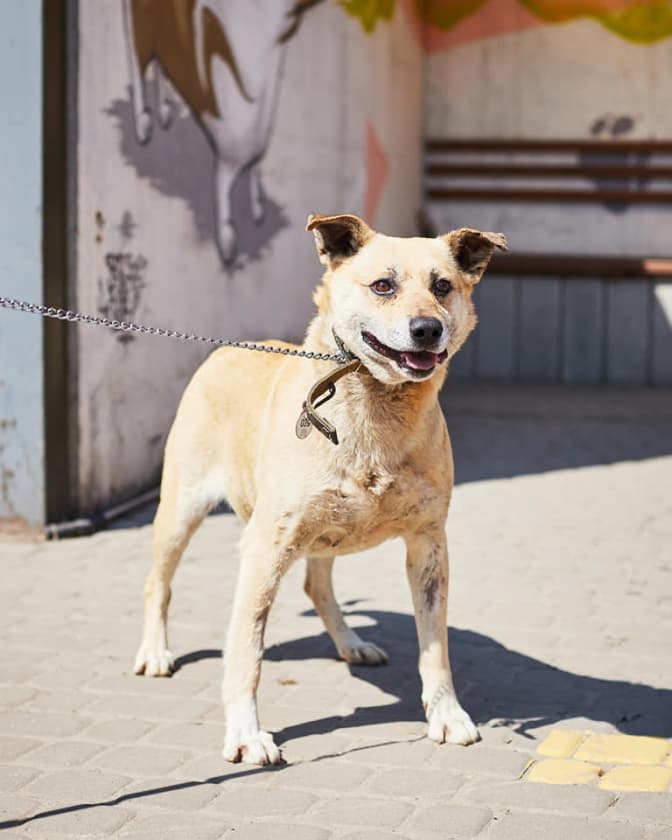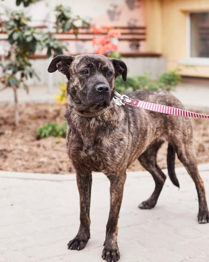Бруна, 4 роки. Лагідна, трохи налякана, але дуже дружня дівчинка. Імовірно, що була домашньою.