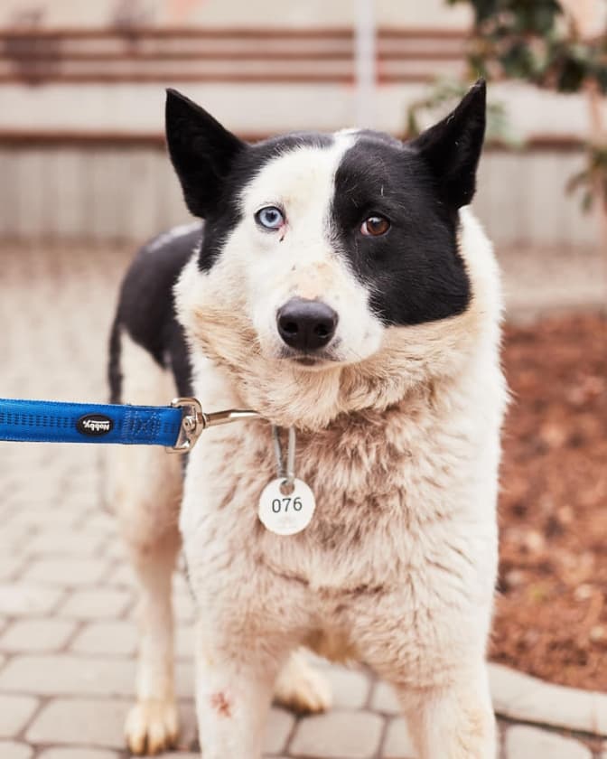 Міла, 3 роки. Урівноважена, пухкенька. Дуже сердечно дає лапу. Має дивовижні очі різного кольору.