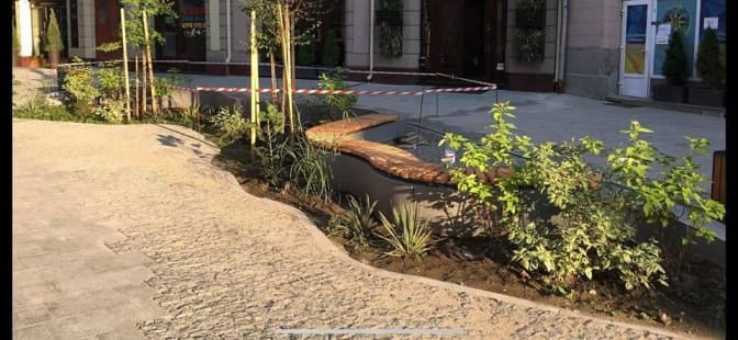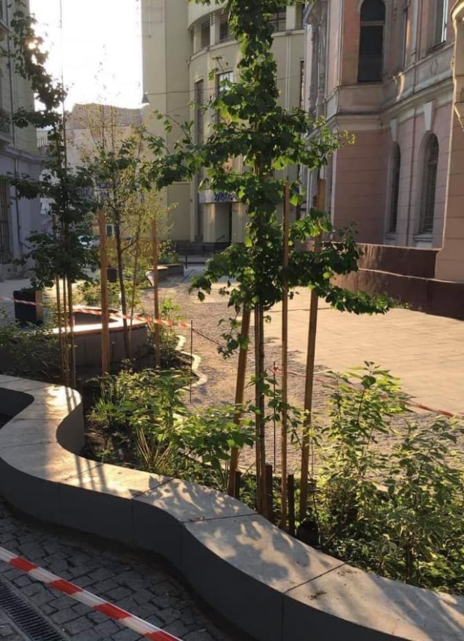 Нагадаємо, на вулиці Руданського висадили два гінкго, три хмелеграби, різні види дерену, кизильники, юкки та злакові міскантуси. Вулицю зробили повністю пішохідною.