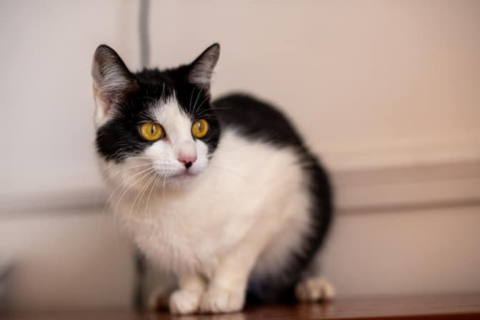 Маня, 1 рік. Ніжна, молода, мініатюрна киця. Має виразний чорно-білий окрас і жовті, як в ящірки, очі. Гарна, стильна і дуже зворушлива.