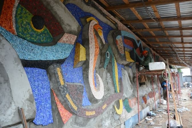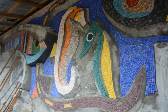 «У квітні відновили роботи на мозаїці «Море і риби». Нагадаю, що минулого року повністю завершили виготовлення рельєфу. Зараз триває на повну потужність викладення камінців мозаїки на рельєф. На комплексне відновлення знадобиться ще півтора місяці. Роботи очолює Остап Патик», — каже він.