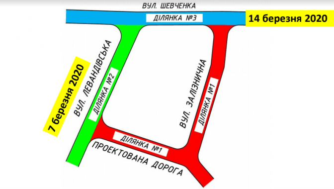 Із 7 березня у Львові перекрили для проїзду вулицю Левандівську, а з 14 березня – частину вулиці Шевченка. Роботи виконуватимуть на ділянці від Залізничної до Левандівської. Їх планують завершити до 31 серпня.