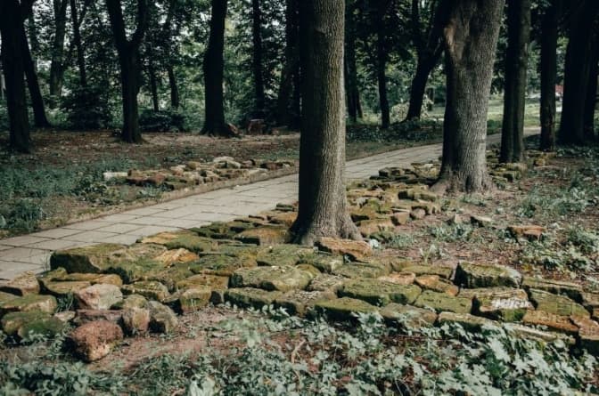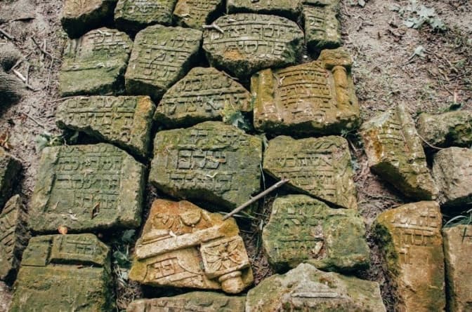 Це єврейські надгробки, які упродовж останніх років знаходили по всьому місту. Небайдужі та волонтери їх звозили у двір позаду пологового будинку на вул. Я. Раппопорта.