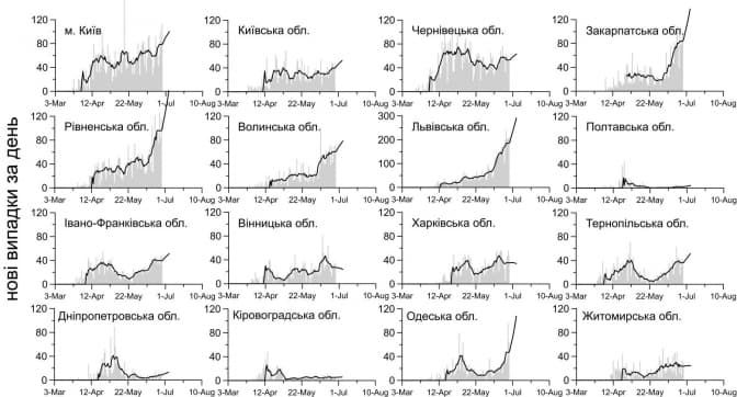 Згідно з прогнозами НАН України, кількість нових виявлених випадків інфікування у Львівській області до 3 липня може зрости до 300 випадків на добу. Також науковці прогнозують значне зростання захворюваності у Закарпатській, Рівненській, Одеській областях та у Києві.