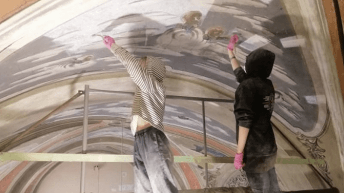 Зображені, які «заховані» під сірою фарбою, досить знищені, через це їх свого часу і замалювали. Наразі реставратори знаходять залишки живопису, але вони дозволяють зробити висновки, що саме зобразили. Після процесу очистки фахівці займатимуться консервацією, укріпленням тиньків, паралельно знайдені зображення вивчають мистецтвознавці.