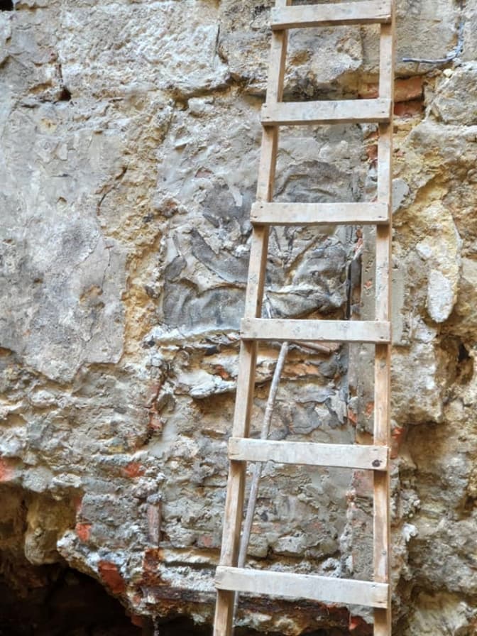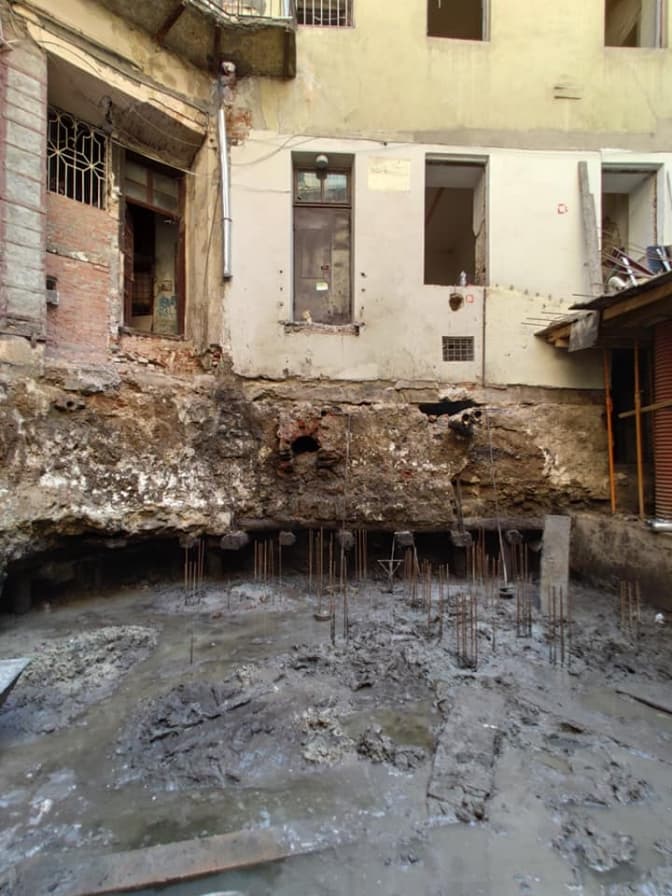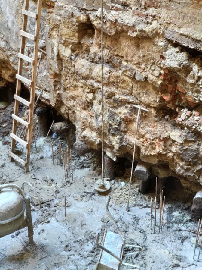 У будинку пам’ятці архітектури, що на розі вулиць Гнатюка та Січових Стрільців, проводять будівельні роботи без необхідних погоджень та археологічного нагляду. Фото котловану та старовинного фундаменту оприлюднили у групі Дослідники Львова у Фейсбук.