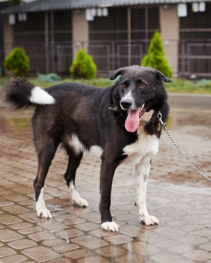 РЕЙН, 3 роки. Місце відлову: вул. Грицая. Неймовірної зовнішності хлопець! Ефектний, з хорошим голосом. Там, за межами ЛКП, залишилась його любов, і за нею він увесь час тужить. Це надзвичайно розумний, чуйний і емоційний собака. Він може дуже багато дати людині.