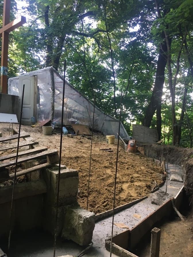 Присутні на місці пояснили, що зводять церкву, яка, за їхніми словами, колись там була. Служитель церкви представився греко-католицьким єпископом Михайлом (прізвище назвав Коваль), а свою конфесію назвав Єдиною Соборною та Апостольською церквою. Допомагає йому «піддиякон» Михайло.