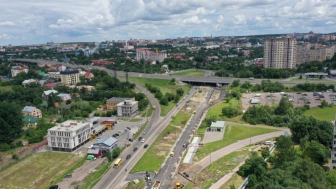 Дорогу тут розширили, зліва і справа буде по три смуги для руху транспорту, одна з яких для громадського транспорту. Також на Хуторівці облаштовують доріжку для велоруху.