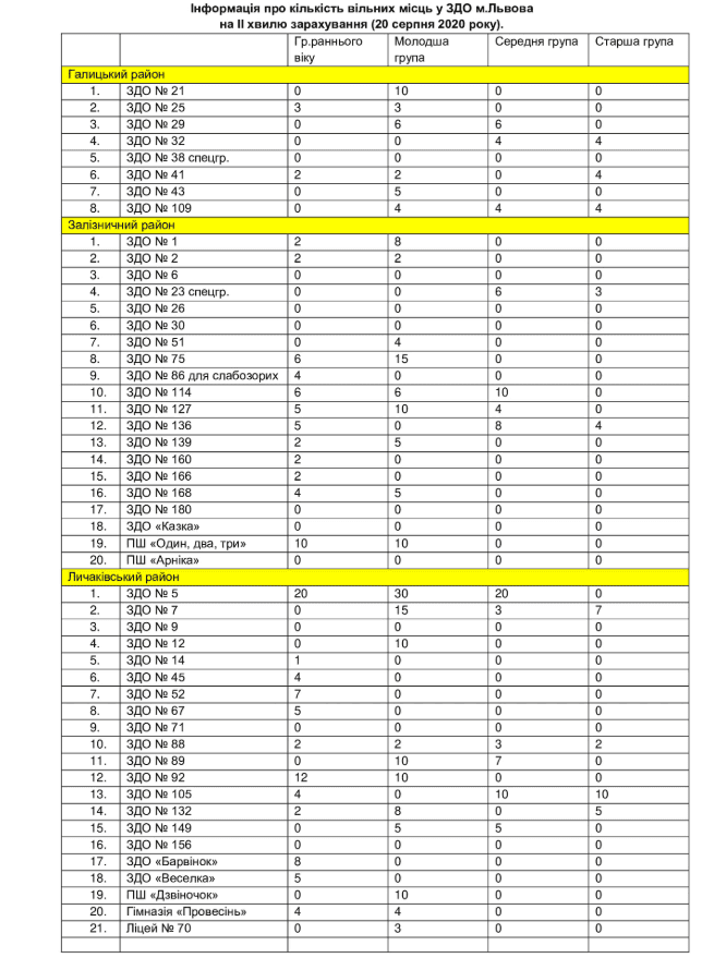 Вільні місця формують з тих, що були вільними в електронній реєстрації станом на 10 травня, із місць у новостворених групах, а також з тих, що звільнилися через неподання документів до 14 липня.