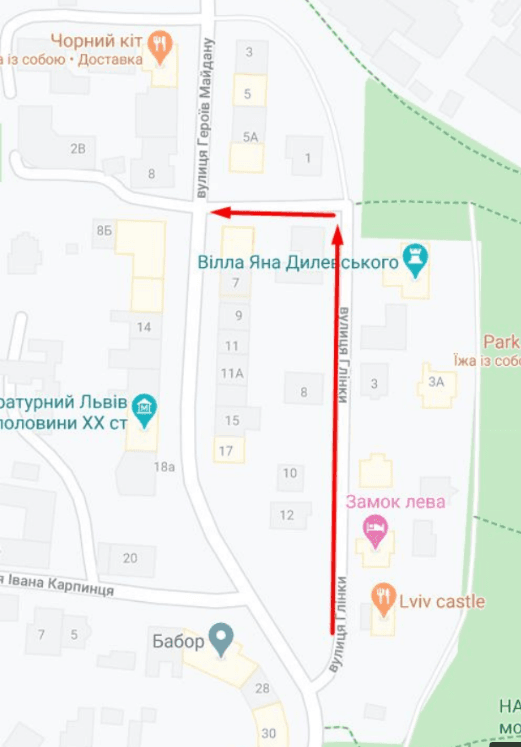 Вулиця буде односторонньою вниз у напрямку від ресторану Lviv Castle до дитячої художньої школи імені Олекси Новаківського.