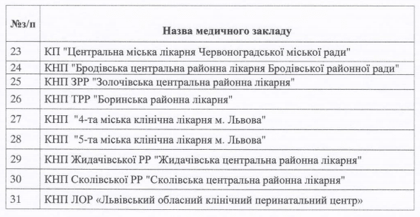 - 31 – у Сокальська ЦРЛ,