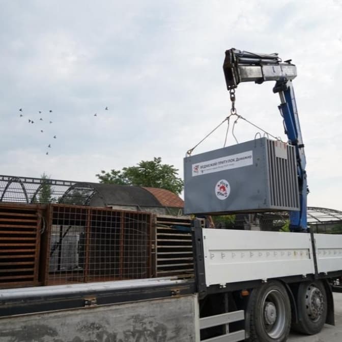 Це ведмеді Потап та Аня. Учора працівники притулку почали транспортацію ведмедів. Вони розповідають, що Аня народилась у 2015 році і жила у Харкові у власника. Згодом її віддали у звіринець Покровська, де були настільки жахливі умови, що її разом з іншими тваринами конфіскували. Потому ведмедиця тимчасово перебувала у Запорізькому зоопарку.