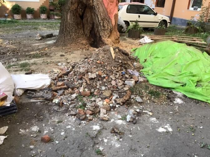 Наразі дерево почистили від цементу та каміння, якими мешканці та комунальники намагались заробити дупло дуба. Також спеціаліст обробив стовбур та почистив дерево від сірчаного грибу, що один з мешканців двору вирощував на ньому.
