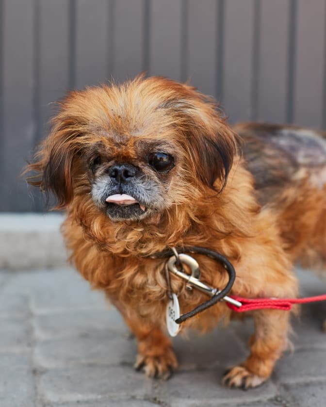 Тарлі, 3 роки. Малий, швидкий і ображений на частину світу хлопчик. Має випнуті вперед зуби, як у пекінеса, що додає йому грізності. Попри це, дуже потішний, квартирний формат.