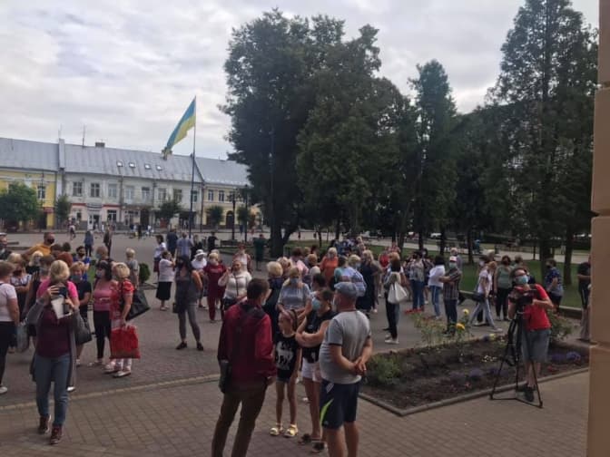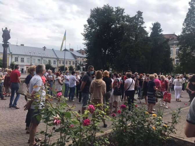 У Самборі на Львівщині містяни вийшли на протест до міської ради – вони виступають проти обмежень через те, що місто віднесли до червоної зони епіднебезпеки через поширення коронавірусної інфекції. Про це повідомляє Самбірська газета.