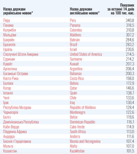 МОЗ оновило перелік країн, які віднесені до «зеленої» та «червоної» зон. Для аналізу брали кількість активних випадків хвороби на 100 тис. населення станом на 22 серпня 2020 року.