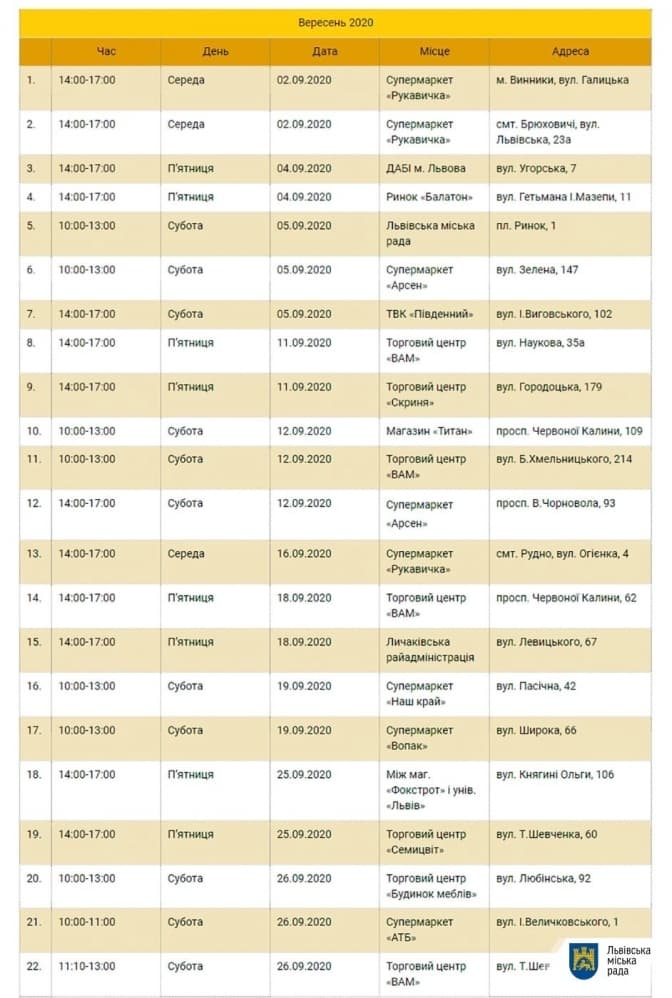 Екобуси мають зупинки у всіх районах Львова, а також у Винниках, Брюховичах і Рудно. Львів'ян просить приносити відпрацьовані лампи і батарейки на утилізацію.