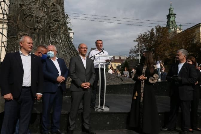 «Обом критеріям відповідає одна людина. Це – Олег Синютка. Політичне рішення про його висунення прийняте, залишилися тільки юридичні формальності. І вперед – до перемоги. Міський голова Львова має бути від «Європейської солідарності», а партія – отримати переконливу більшість в міській Раді. Місто потребує змін. Я не сумніваюся в тому, що львівська команда «Європейської солідарності» виграє вибори і міського голови, і міської Ради. У вас – сильні кандидати і сильна воля до перемоги», – заявив Порошенко.