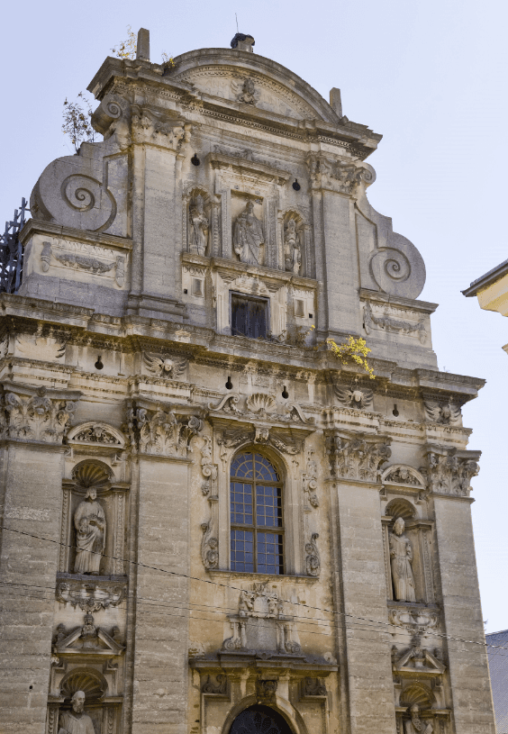 Храм Різдва Богородиці побудований у 1656-1658 роках на місці старого дерев’яного костелу. Він є яскравим прикладом архітектури перехідного етапу – від ренесансу до бароко. Храм декілька разів ґрунтовно ремонтували. Востаннє – у 30-х pоках 20-го століття, коли оновили фасади та дзвіницю, замінили покриття підлоги на керамічну плитку.