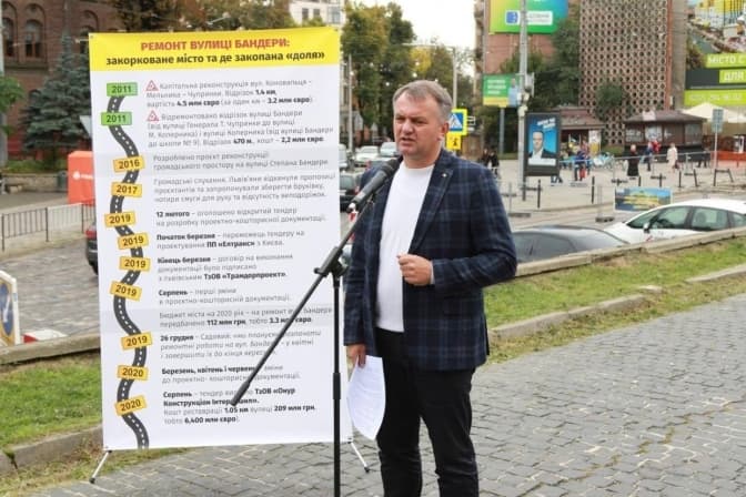 «Остаточно роботи з ремонту вулиці Бандери виконуватиме ТзОВ «Онур Конструкціон Інтернешнл» за понад 209 мільйонів гривень або 6 мільйонів 400 тисяч євро. Підрядник має відремонтувати всю частину вулиці протяжністю 1 км 50 м. Вартість дуже висока», – зазначив народний депутат.