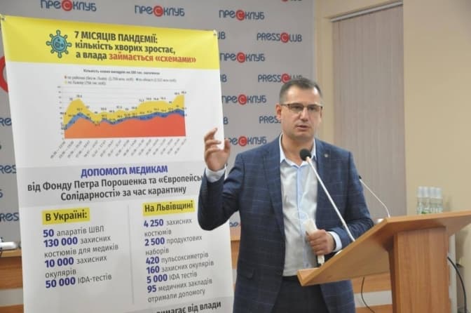 Окрім того, Фонд Петра Порошенка і «Європейська Солідарність» закупили 50 апаратів ШВЛ, 130 000 захисних костюмів для медиків, 10 000 захисних окулярів, 50 000 ІФА-тестів.