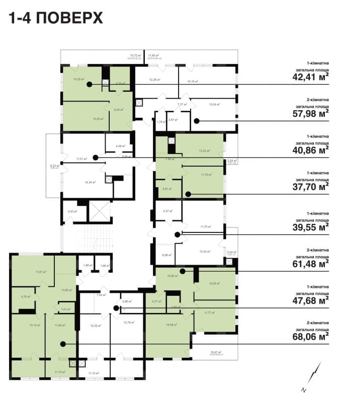 1-кімнатні 37-47 м² , ціна від 700$