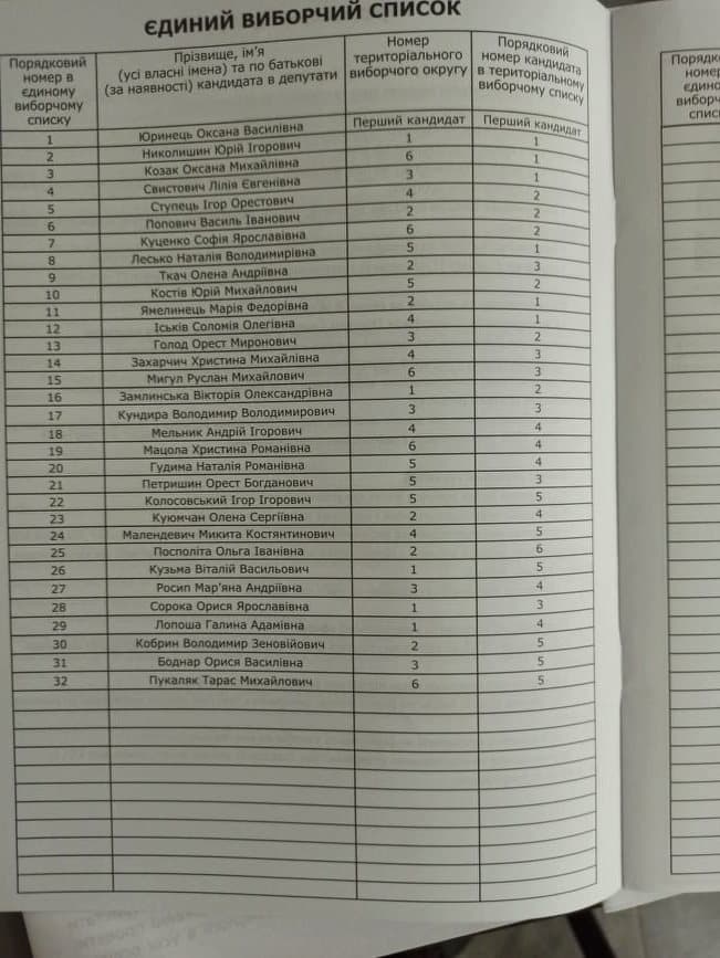 Замість інформації про кандидатів від УГП вказана інформація про осіб з іншої політичної сили – партії «Удар».