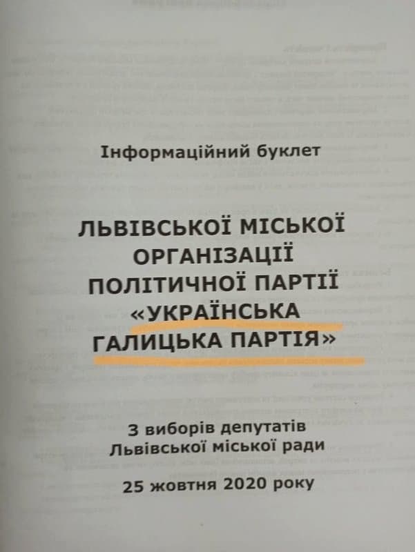 Натомість інформація про міських кандидатів від Української Галицької Партії немає в інформаційних буклетах взагалі. Спостерігачі від партії складають відповідні акти про порушення виборчого законодавства.
