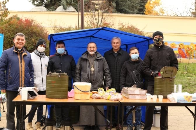 Їжу та чай разом з помічниками роздавав Архиєпископ і Митрополит Львівський Владика Ігор Возьняк.