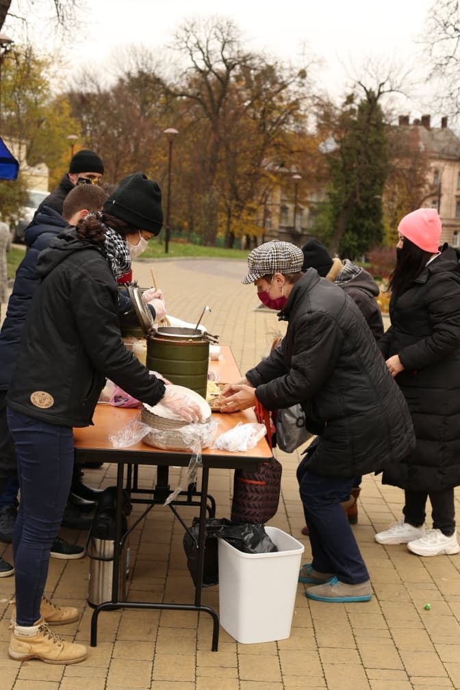 Сьогодні на площі біля собору св. Юра роздавали їжу потребуючим. Це був гарячий обід з чаєм та печиво, щоб зігрітись у холодну пору року, повідомляє Благодійний Фонд «Карітас Львів УГКЦ».