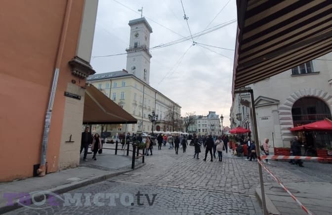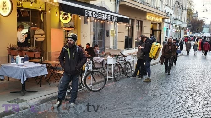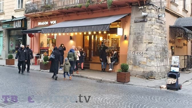 У центральній частині Львова – проспекті Свободи та площі Ринок – сьогодні досить людно, проте частина закладів харчування, як от ресторани та бари зачинені. Ті, хто відкриті, здебільшого працюють на виніс. Відчиненими залишаються і деякі продуктові магазини, проте людей в них практично не має. У більшості людей, які ходять центральними вулицями міста або сидять у закладах, масок на обличчях не має.