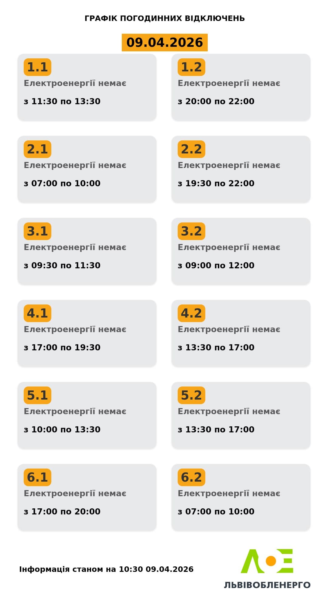 на сайті «Львівобленерго» у розділі «Чому немає світла»: https://poweron.loe.lviv.ua/